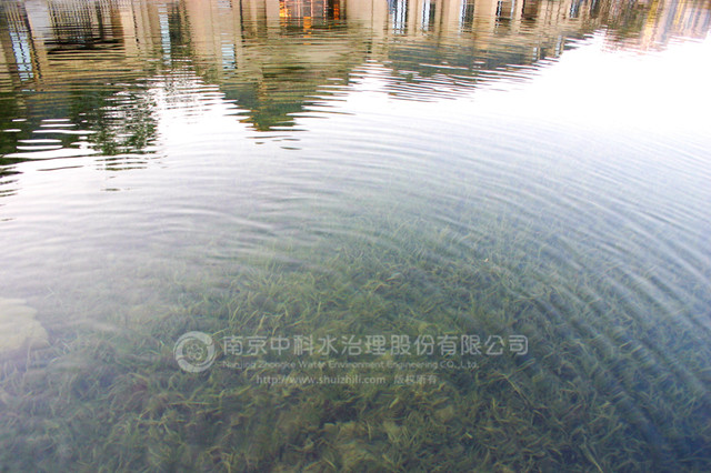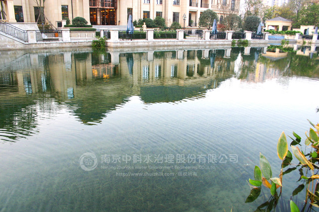 復地御香山二期景觀湖為新開挖人工湖體。業主要求通過建立健康、穩定、經濟的清水型生態系統來保護湖水水質,實現長效景觀性。水生態工程施工時間為2012310日至530日。竣工后,復地御香山二期景觀湖水質主要指標達到 《國家地表水環境質量標準》GB3838-2002 Ⅱ 類標準,常年水體透明度在1.7米以上清澈見底,生態系統健康穩定。