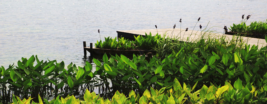 ?武漢園博園景觀湖清水型生態系統構建工程水域面積約58000m2,平均水深1.7m,引水水質為劣V類,雨水面源徑流中含有綠化施肥且量大。園博園景觀湖清水型生態系統構建的成功,不僅形成了景觀優美、植被茂密的生態環境,更具有保護水源、凈化水質、調節徑流、提供多種動物棲息地等功能。